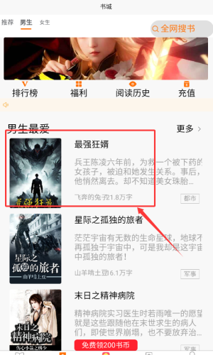 3、點(diǎn)擊男生最愛分類查找書籍。