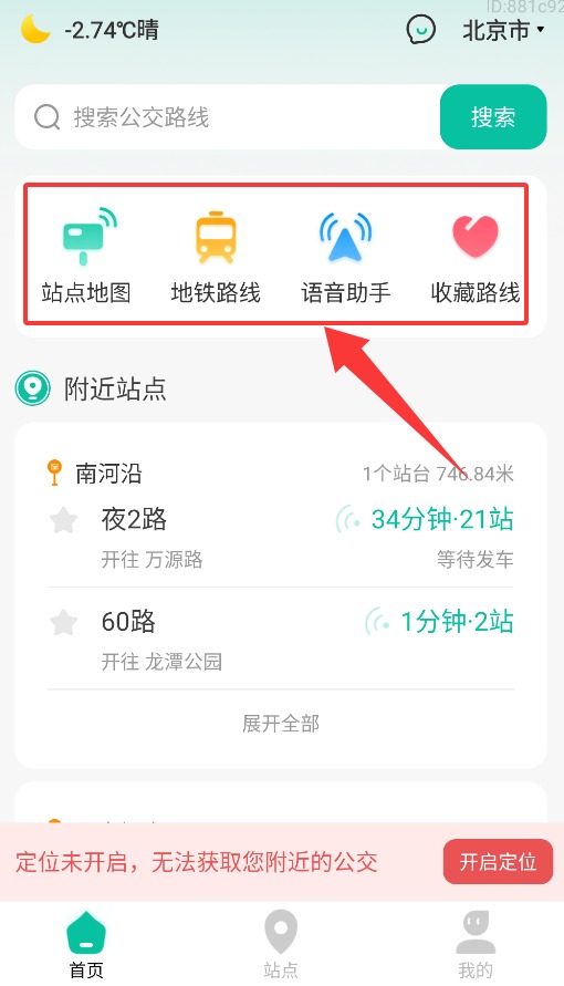 2、首頁(yè)提供站點(diǎn)地圖、地鐵路線、語(yǔ)音助手及收藏路線等功能。
