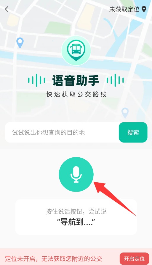 4、語(yǔ)音助手界面按住按鈕說出目的地,即可進(jìn)行路線搜索。
