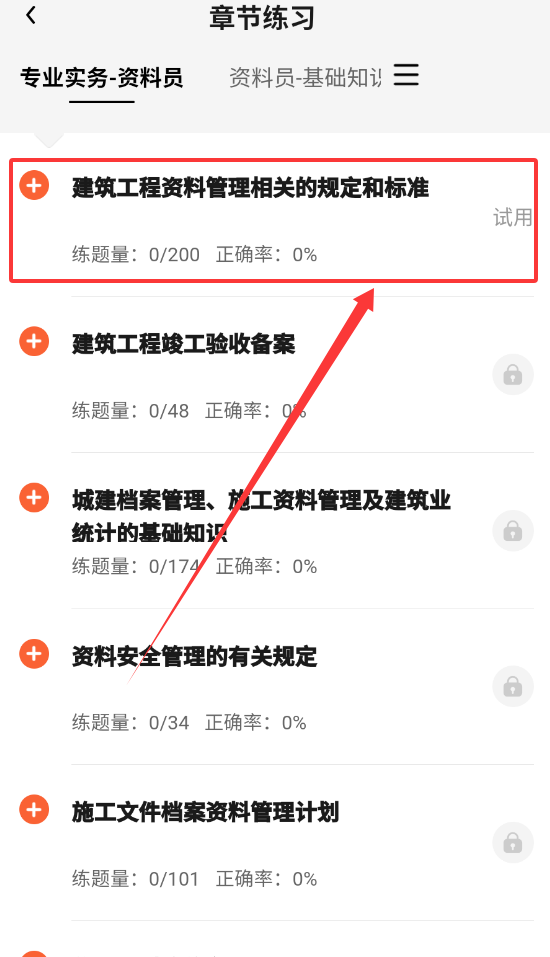 1、點擊章節(jié)練習功能,選擇你想要學習的章節(jié)比如建筑工程資料管理規(guī)定,就可以開始做題了呀。