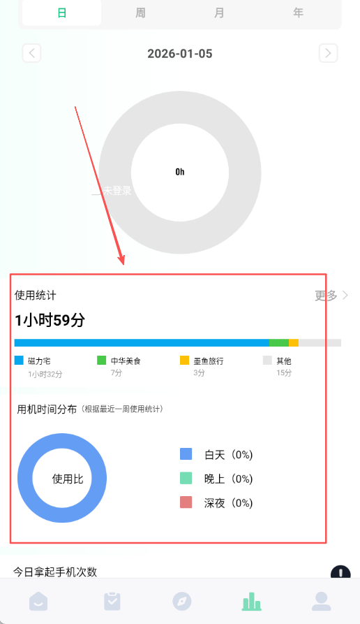 4、在數(shù)據(jù)頁(yè)查看詳細(xì)的專注統(tǒng)計(jì)和手機(jī)使用情況,根據(jù)數(shù)據(jù)調(diào)整自己的專注計(jì)劃與習(xí)慣。