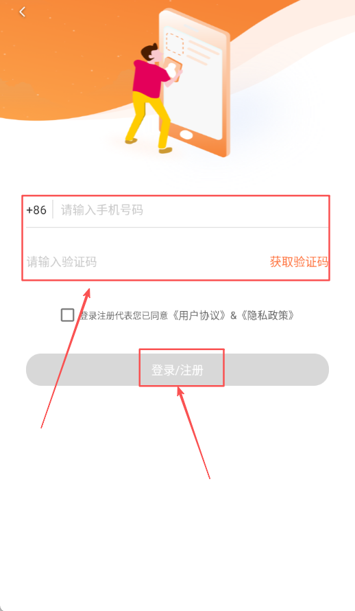 4、在登錄頁面輸入手機號碼和驗證碼,勾選同意協(xié)議后點擊登錄注冊完成登錄,即可獲取壁紙。