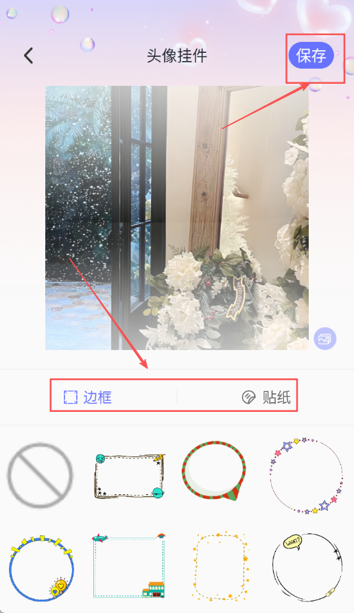 3、在底部貼紙庫中選擇裝飾元素添加到頭像進(jìn)行個性化裝飾,選擇喜歡的貼紙?jiān)靥砑拥筋^像上調(diào)整位置和大小效果。