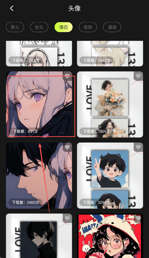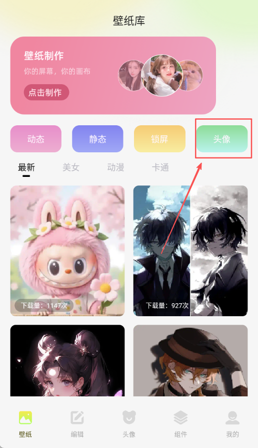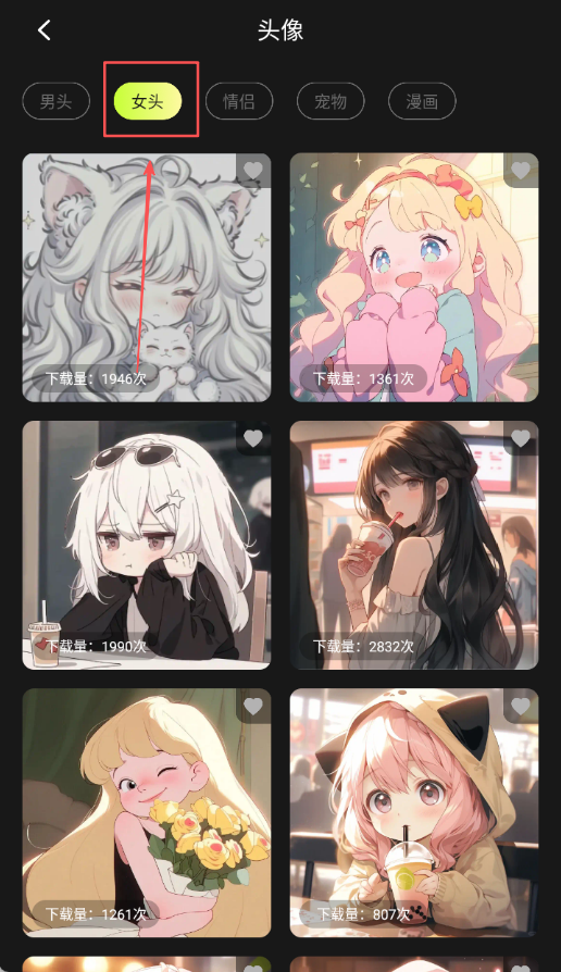 1、在壁紙庫首頁點(diǎn)擊導(dǎo)航欄的頭像分類標(biāo)簽進(jìn)入專區(qū),進(jìn)入頭像專區(qū)瀏覽各種頭像資源內(nèi)容和主題分類列表。