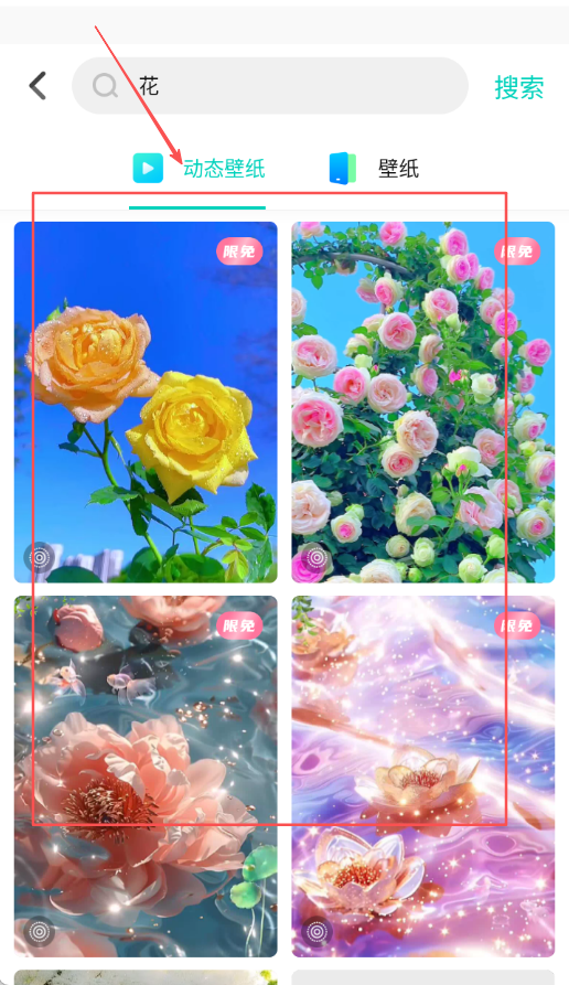 2、在搜索頁面輸入關(guān)鍵詞如花查看壁紙搜索結(jié)果并選擇,查看壁紙搜索結(jié)果并選擇心儀的壁紙進(jìn)行詳細(xì)預(yù)覽查看效果。
